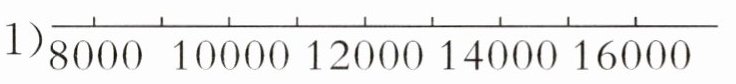 【提示】8000到16000之间被平均分成了8段,因此每小段表示一千,通过数格子可以找到上面数的位置。四舍五入到哪一位,就把那一位后面一位上的数进行"四舍"或"五入"。