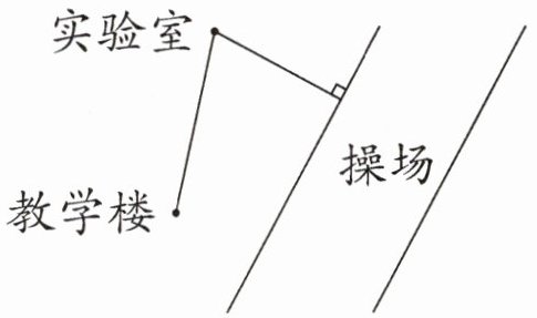 (2)从直线外一点到这条直线的所有线段中,和这条直线垂直的线段最短。从实验室向操场作垂直线段即为所求。