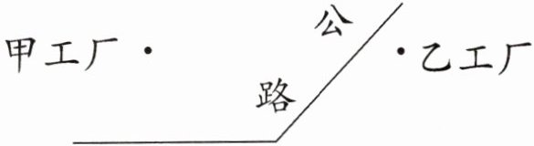 3. 甲、乙两个工厂各要修一条路与公路连接,怎样修距离最近?请在下图中画出来。