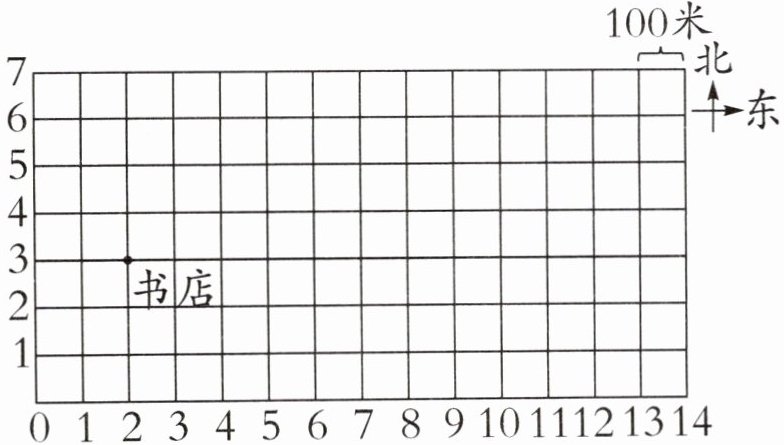 2. 星期六,乐乐骑共享单车从家出发,先向西骑了300米到商店,再向北骑了500米到公园,接着向西骑了200米到车站,然后向南骑了400米到学校,最后向西骑了300米到书店买书。应该用数对(