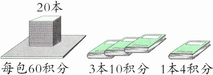 用60积分换一包20本,用50积分换15本,用8积分再换2本,这样使用积分兑换最划算。