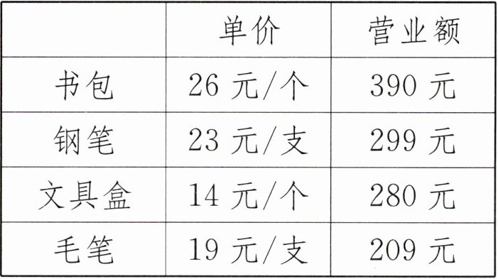 [提示]用每种学习用品的营业额除以单价,求出销量,比较得出最畅销的学习用品。