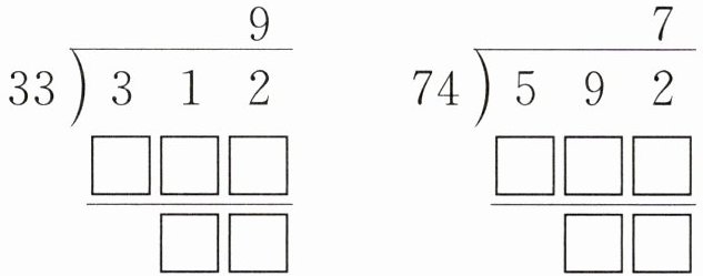 [提示]试商时,如果商与除数的乘积比被除数大,那么说明商大了,要调小;如果余数比除数大,或与除数相等,那么说明商小了,要调大。