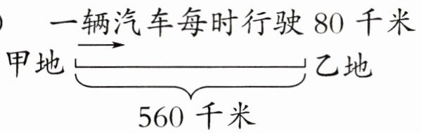 【提示】由图可知,甲地到乙地的路程是560千米,汽车行驶的平均速度是80千米/时,根据“时间=路程÷速度”,得这辆汽车从甲地到乙地需要行驶的时间是560÷80=7(时)。