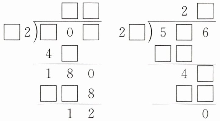 $\begin{array}{r} \Box1\Box4\\ \Box4\Box2\enclose{longdiv} {6\ 0\ 0}\\ 4\ \Box2\ \ \ \\ \hline 1\ 8\ 0\\ \Box1\Box6\ 8\\ \hline 1\ 2\end{array}$