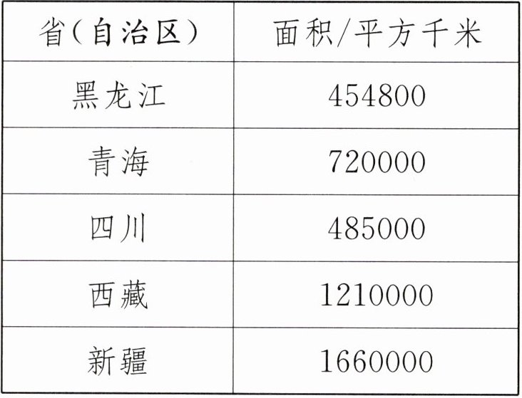 6. (天津河西区)我国部分省(自治区)的面积如下表。