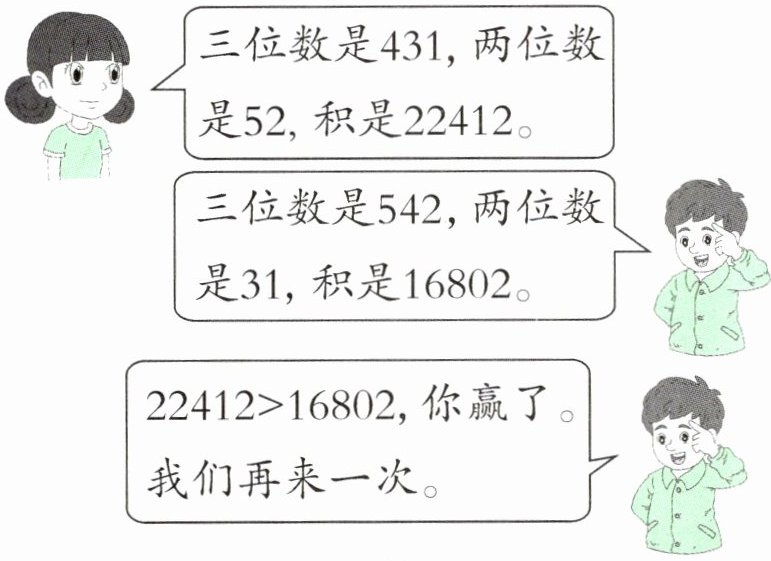 用 1,2,3,4,5 这五个数字,任意组成一个两位数和一个三位数,用计算器求出它们的积,积大者获胜。