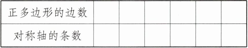 6. 新考法 规律探究 下面的图形都是正多边形,数一数这些正多边形分别有多少条对称轴,填在下面的表格里,并说说你发现了什么。
