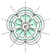 7. 传统文化 剪纸 中国剪纸是一种用剪刀或刻刀在纸上剪刻花纹,用于装点生活或配合其他民俗活动的民间艺术。数一数图中剪纸一共有几条对称轴,并画出来。自己是否能剪出一个简单的图形呢?