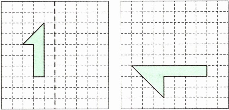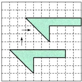 5. 画一画:以粗虚线为对称轴,画出左图中图形的轴对称图形;将右图中图形先向上平移4格,再向右平移2格。