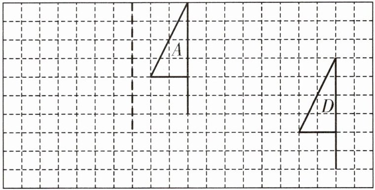 4. 先画出三角形关于粗虚线的轴对称图形①,再画出图形①向右平移6格后的图形②。