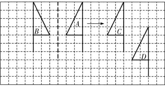 (3)把图形A先向下平移( )格,再向右平移( )格,可到达图形D的位置。