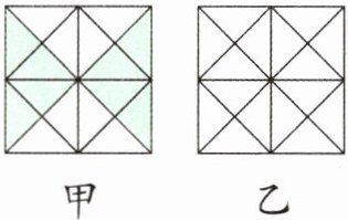 5. 正方形被划分成16个大小、形状完全相同的三角形,请在图乙中涂色,使它成为一个轴对称图形,如图甲。