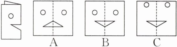 (3)如左下图,淘气在对折好的纸上剪下一个小圆和一个小三角形,打开后是图(