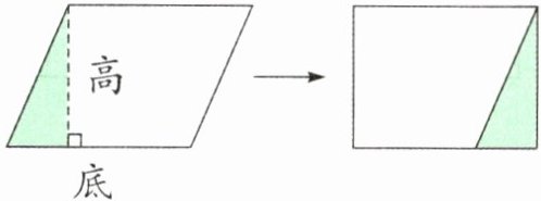 1. 如下图所示:把一个平行四边形沿着它的高剪开,可以拼成一个长方形,这个长方形的长相当于平行四边形的