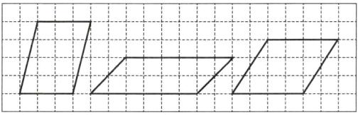 3. 在方格纸上画两个形状不同的平行四边形,使它们的面积与图中左边平行四边形的面积相等。
