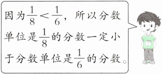 因为$$ \frac { 1 } { 8 } < \frac { 1 } { 6 } $$,所以分数单位是$$ \frac { 1 } { 8 } $的分数一定小于分数单位是$ \frac { 1 } { 6 } $$的分数。