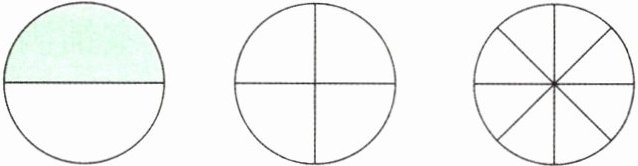 1. 涂色表示出与给定分数相等的分数,并填一填。