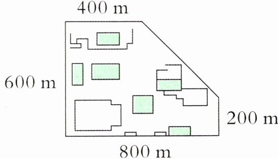4. 某学校的校园平面图如右下图所示,这个学校占地面积是多少平方米?合多少公顷?