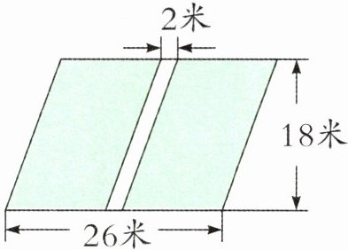 4. (福建福州市·应用意识)学校为了更好地开展劳动教育,丰富同学们的课余活动,计划在操场整理出一块长 26 米、宽 18 米的平行四边形种植地。为了方便种植,中间修了条小路(如右下图),你能算一算可种植(涂色部分)的面积有多大吗?