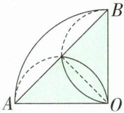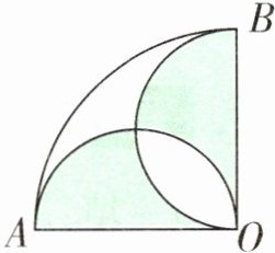 例2 如右图,线段 $ OA、OB $ 分别为小半圆的直径,且 $ OA = OB = 6 $ 厘米, $ \angle BOA = 90^\circ $,则涂色部分的面积为多少平方厘米?