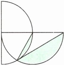 4. 如右下图,将两个半径为 $ 1dm $ 的半圆垂直相交,横放的半圆直径通过竖放的半圆的圆心,图中两个涂色部分的面积差是多少?( $ \pi $ 取 3)