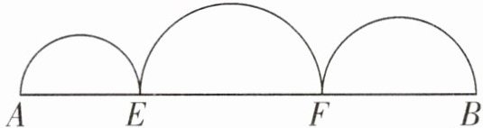 1. 如下图,线段 $ AB $ 的长度为 $ a $,在 $ AB $ 上任取两点 $ E、F $,分别以 $ AE、EF、FB $ 为直径作半圆,设三个半圆的周长和为 $ m $,则 $ m $ 的长度是(