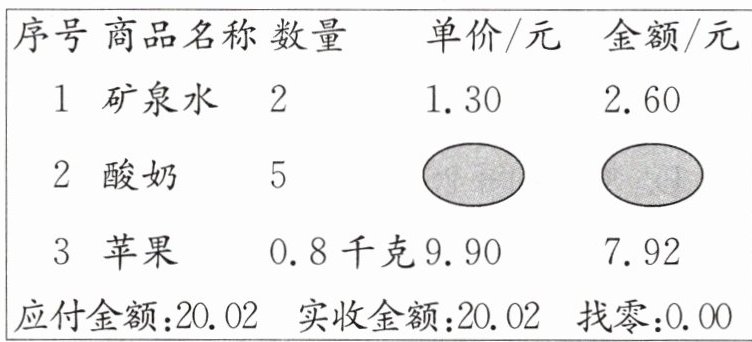 7. 超市促销,酸奶一律打九五折。下面是淘气去超市购物的购物小票,你能算出一袋酸奶原来是多少元吗?