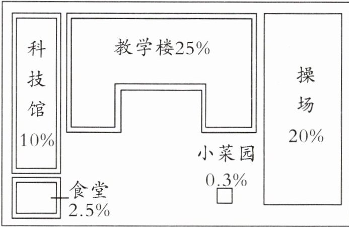 6. 和平路小学的校园占地总面积是 30000 平方米,各建筑物占校园总面积的百分比如下图。