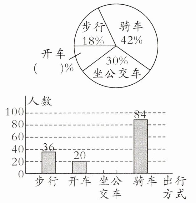 (2)开车人数占调查总人数的百分比:1−18%-42%−30%=10%