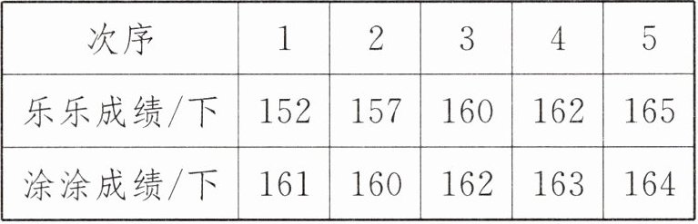 4. 区教体局准备举办全区小学生体育运动会。新华小学准备在乐乐和涂涂两人中选一人参加此次运动会的 1 分钟跳绳竞赛项目。下面是两人最近五次学校选拔赛的成绩统计表。