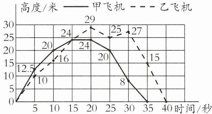 (2)起飞后第10秒甲飞机的高度是20米,乙飞机的高度是16米;起飞后第15秒两架飞机处于同一高度。