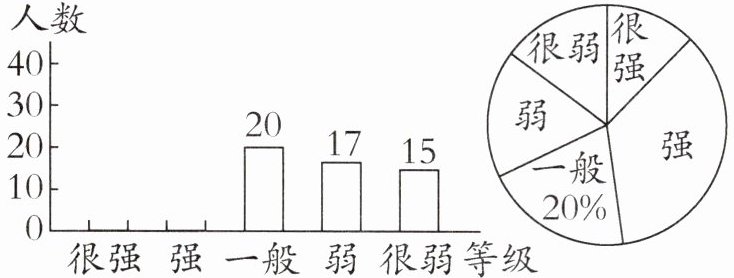 2.12 36 【提示】根据统计图中“反诈骗意识”一般的人数和其所占总人数的百分比可得调查总人数为20÷20%=100(人),进而得到“反诈骗意识”强和“反诈骗意识”很强的人数共有100−20−17-15=48(人),因为“反诈骗意识”强的人数是“反诈骗意识”很强的人数的3倍,所以“反诈骗意识”很强的人数有48÷(3+1)=12(人),“反诈骗意识”强的人数有48−12=36(人)。