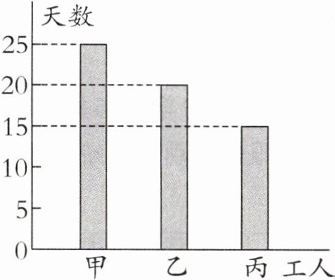 (1)由图可知甲单独完成需25天,乙单独完成需20天,丙单独完成需15天。乙、丙合作每天完成$\frac{1}{20}+\frac{1}{15}$,完成工作所需时间为$1÷(\frac{1}{20}+\frac{1}{15})=1÷(\frac{3}{60}+\frac{4}{60})=1÷\frac{7}{60}=\frac{60}{7}=8\frac{4}{7}$(天)