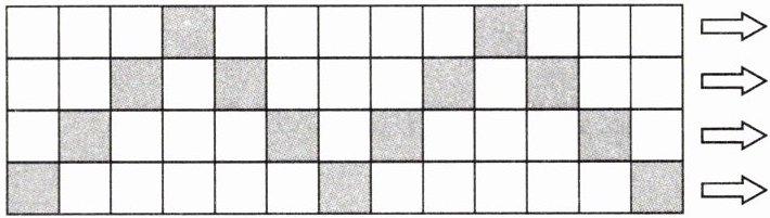 5. 通往火车站的2号厅有一条人行通道,通道长120m,宽2m。现用边长5dm的正方形地砖铺设2号厅地面。设计人员选用了灰色和白色两种地砖,按箭头方向铺下去,具体铺设方案如下图。