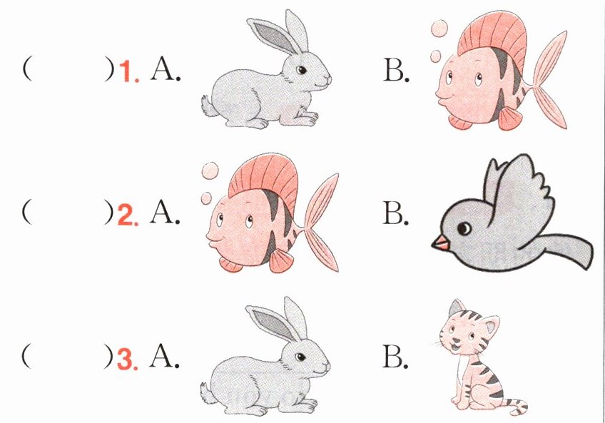 二、新情境 参观宠物店 迈克来到宠物店参观,让我们一起看一看,迈克都喜欢哪些动物吧。(根据图片,选出正确的选项。)