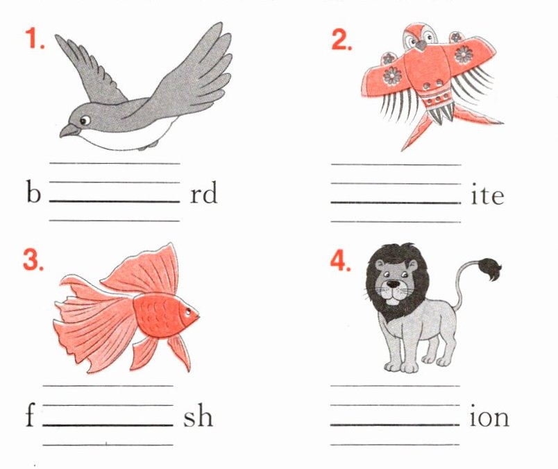 1.i 2.k 3.i 4.l 5.a 6.m 1.图片是小鸟,英文为bird,因此填i。2.图片是风筝,英文为kite,因此填k。3.图片是鱼,英文为fish,因此填i。4.图片为狮子,英文为lion,因此填l。5.图片为熊猫,英文为panda,因此填a。6.图片为猴子,英文为monkey,因此填m。