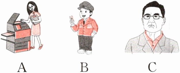 1. 句子意为“我的父亲是一位工厂工人,他在一家大工厂工作”。图片 B 是一位工人形象,与句子描述工人职业相符,所以选 B。