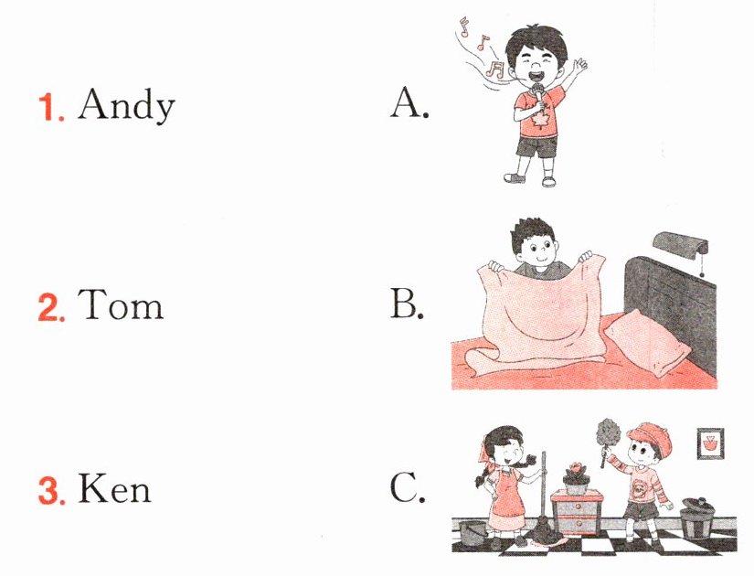 3.根据“At last,the kids help clean the rooms.”可知,第一幅图片是3。