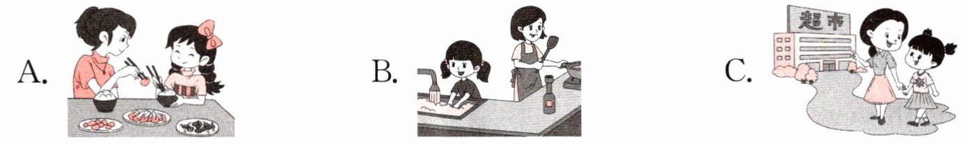)3. A. sing old songs B. tell stories C. clean the room D. make the bed(
