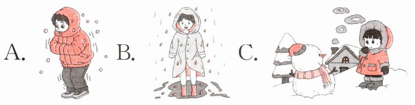 A. It's hot. B. It's cloudy. C. It's snowy.