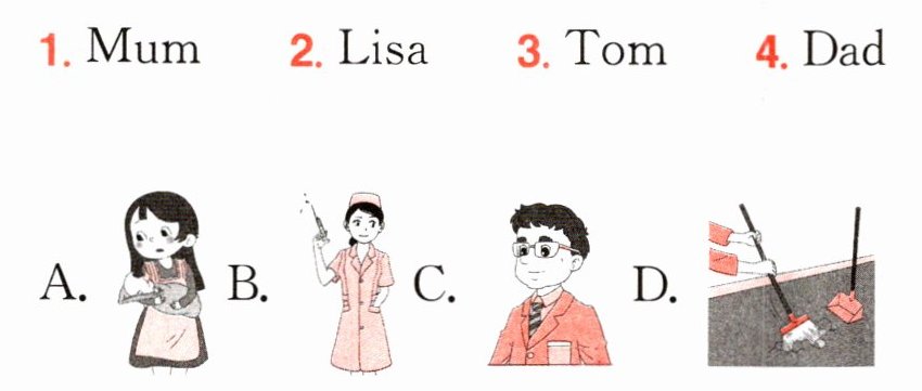 1. Mum 2. Lisa 3. Tom 4. Dad