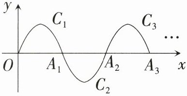 11. 如图,一段抛物线$y = -x(x - 4)(0 \leqslant x \leqslant 4)$,记为$C_{1}$,它与$x$轴交于点$O,A_{1}$. 将$C_{1}$绕点$A_{1}$顺时针旋转$180^{\circ}$得到$C_{2}$,它与$x$轴的另一交点为$A_{2}$;将$C_{2}$绕点$A_{2}$顺时针旋转$180^{\circ}$得到$C_{3}$,它与$x$轴的另一交点为$A_{3}$;$\ldots$;如此进行下去,得到一条连续的曲线. 若点$P(2026,n)$在这条曲线上,则$n$的值为