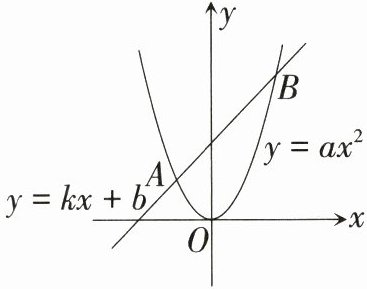 9.〔北京市〕如图,一次函数$y = kx + b(k \neq 0)$与二次函数$y = ax^{2}(a \neq 0 )$的图象分别交于点$A(-2,2),B(4,8)$,则关于$x$的方程$ax^{2} = kx + b$的解为