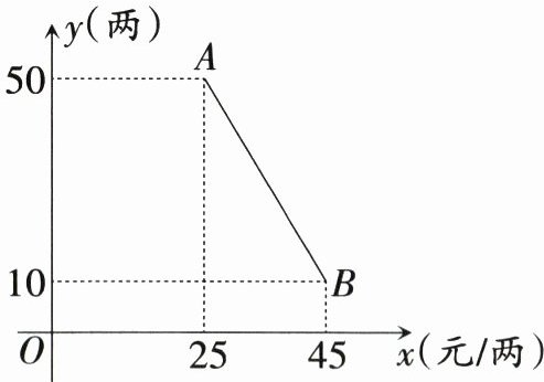 得$\begin{cases}25k + b = 50\\45k + b = 10\end{cases}$解得$\begin{cases}k = -2\\b = 100\end{cases}$