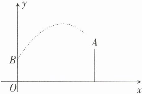 11. (12分)一名运动员第一次在距离篮圈中心$ 7 \mathrm{m} $(水平距离)远处跳起投篮,篮球在空中运行的路线为一条抛物线.球出手点$ B $距离地面$ 2 \mathrm{m} $,在与运动员水平距离为$ 4 \mathrm{m} $的空中到达最大高度$ 5.2 \mathrm{m} $,篮圈中心点$ A $距离地面约$ 3 \mathrm{m} $,建立如图所示的平面直角坐标系.