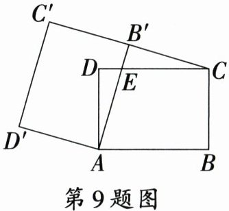 9. 在矩形ABCD中,AB = 4,BC = 3,将矩形ABCD绕点A逆时针旋转得到矩形AB′C′D′,当C,B′,C′三点共线时(如图),AB′交DC于点E,则DE的长度是 (