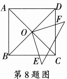 8. 〔南宁市〕如图,正方形ABCD的边长为2,对角线AC,BD相交于点O.将直角三角尺的直角顶点放在点O处,两直角边分别与OD,OC重叠,当三角尺绕点O顺时针旋转α(0°<α<90°)时,两直角边分别与正方形的边BC,CD交于E,F,则四边形OECF的周长 (