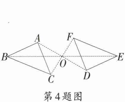 4. 如图,$\triangle ABC$与$\triangle DEF$成中心对称,点$O$是对称中心,则下列结论不一定正确的是 (