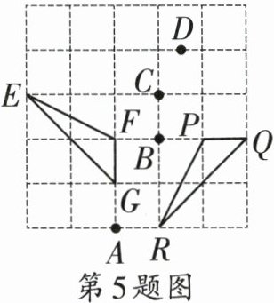 5. 如图,在正方形网格中,$\triangle EFG$绕某一点旋转某一角度得到$\triangle RPQ$,则旋转中心可能是 (